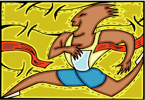Mrs Hepworth fired the starter’s gun, and the dads sprinted off for one lap of the 400 metre track. At first Shumash looked like he was going to be left behind. Samantha’s father was out in front, bounding along on long legs, and Susan’s more stocky dad was in second place. But on the final bend, Shumash started to accelerate. He went past the other runners as if he was flying. You should have seen his face as he ran through the winning tape. He was as astonished as anyone.