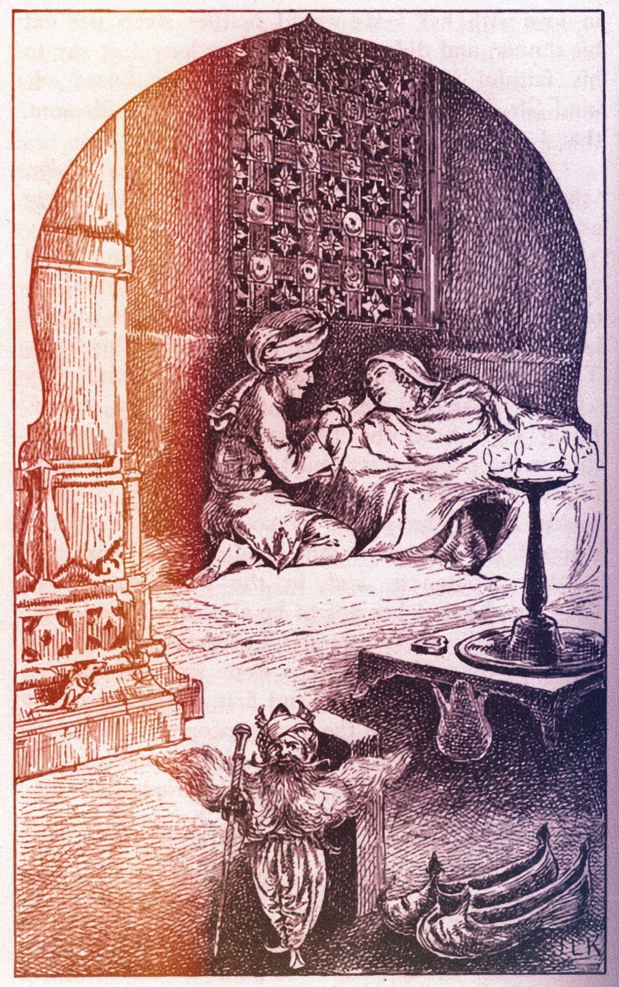 And then, with a buzz a whizz and bang, he transported them to the house of the boy’s old mother, who had been living all this time on two silver rupees and the produce of her garden. And of course they lived richly, healthily, and happily ever after.